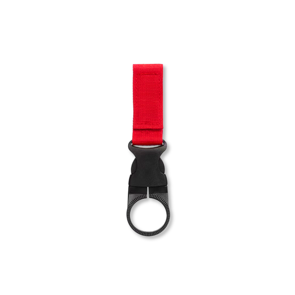 Genau hier kommt unsere Gurtband-Schnalle mit Flaschenhalter ins Spiel.